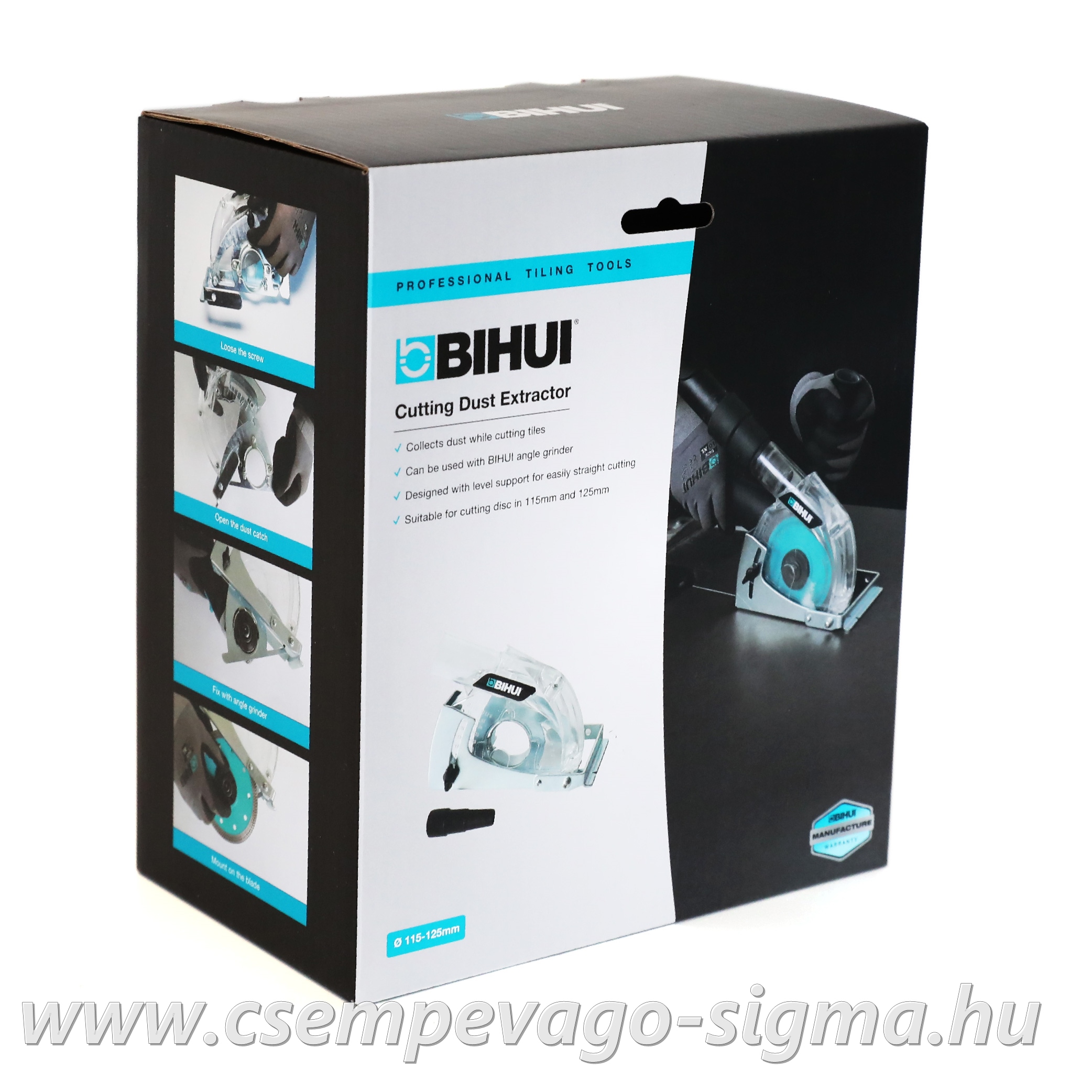 Tartós átlátszó ABS műanyagból készült a vágásvonal jó láthatósága érdekében. Lehetővé teszi, hogy pormentesen dolgozzon 115 mm-es vagy 125 mm-es tárcsaátmérőjű csiszológépekkel.
