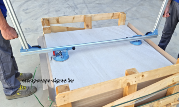 Az Ergo-Lift csempe mozgatására és lerakására szolgáló berendezés 60x60cm-től 180x80cm-ig terjedő méretekkel.
